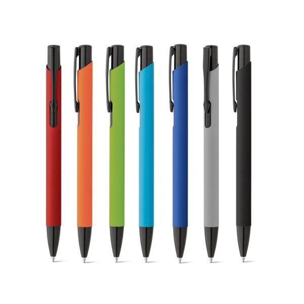 Stylo à bille en aluminium avec corps coloré et rubber. Disponible dans une large gamme de couleurs. Encre bleue